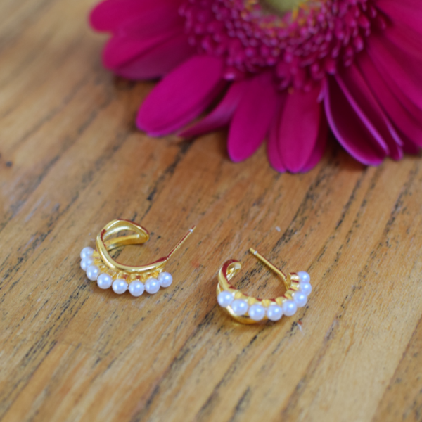 Mini Halbmond Creolen Ohrringe Süßwasserperlen mit 18K Vermeil Vergoldung