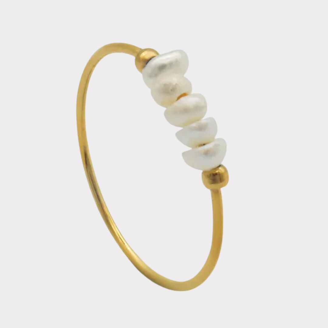 Verleihe deinem Stil einen Hauch von zeitloser Eleganz mit unserem “Eleganten Goldring mit Süßwasserperlen”. Dieser filigrane Ring ist ein wahres Schmuckstück und vereint die Schönheit von edlem Gold mit der natürlichen Anmut von Süßwasserperlen.