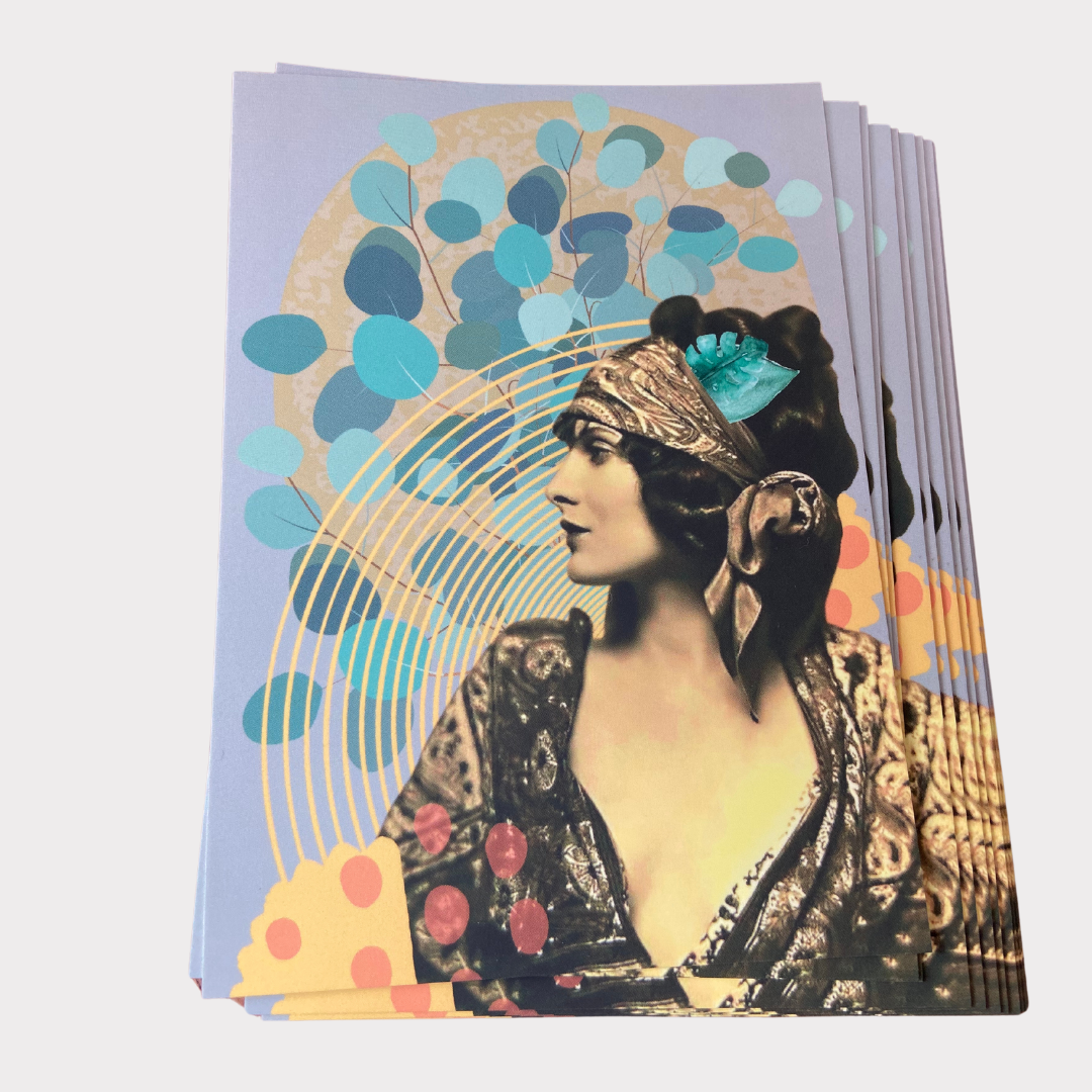 Unsere Postkarte für deine witzigen Grüße – Postkarte Frau Collage 20er Jahre Vintage Berlin. Eine ganz tolle Collage.
